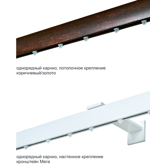 Профильные карнизы закрепляются на потолке или стене при помощи кронштейнов, это позволяет использовать различные дизайнерские решения. Гнутые профильные карнизы могут изготавливаться по лекалам, поэтому можно использовать в помещениях со сложной планировкой.