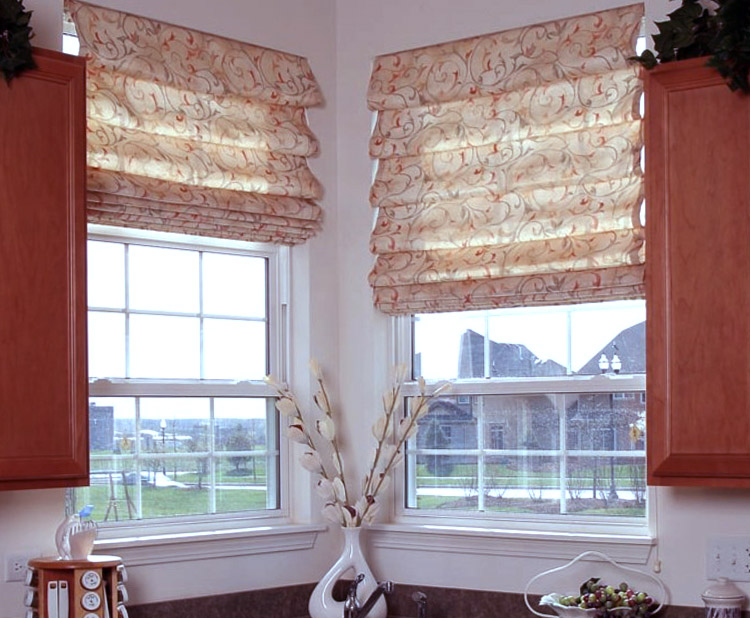 Римские шторы представляют собой ровные полотна из ткани, которые с помощью механизма управления собираются в горизонтальные складки. Четкость линий при сборке штор обеспечивают специальные планки.