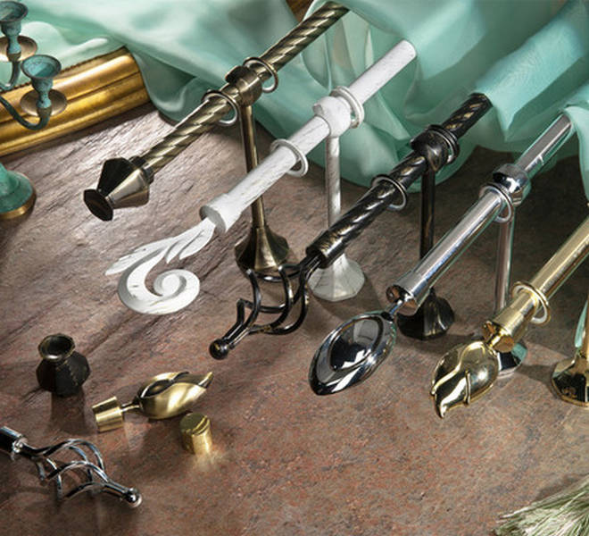 Студия текстильного дизайна «Шелк и бархат» предлагает уникальные большой ассортимент металлических карнизов и металлических аксессуаров для штор.