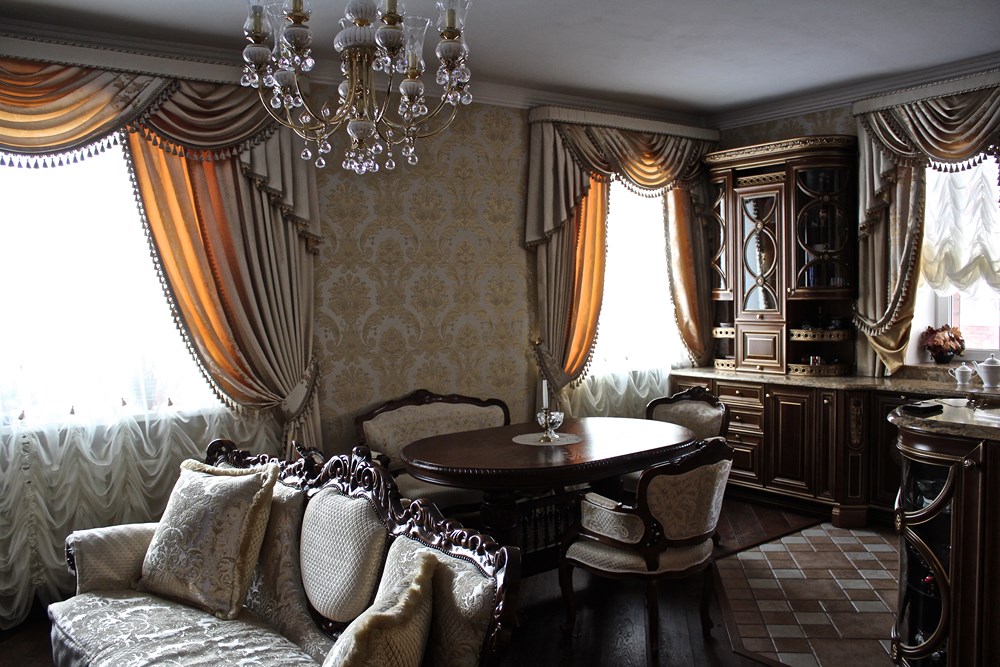 Студия текстильного дизайна «Шелк и бархат» поможет создать уют в Вашей кухне и столовой. Мы создаем шторы для кухни и столовой из лучших тканей, помогаем воплощать Ваши фантазии и оригинальные идеи создавая оригинальный интерьер.