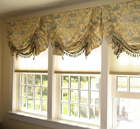 Для оформления интерьера обычно подбираются ткани натурального состава – ситцы, лён, рогожка, хлопок, также можно использовать органзу и тюль. Ткани любо однотонные, либо с рисунком, принтами, цветочными мотивами, в клетку, в полоску.